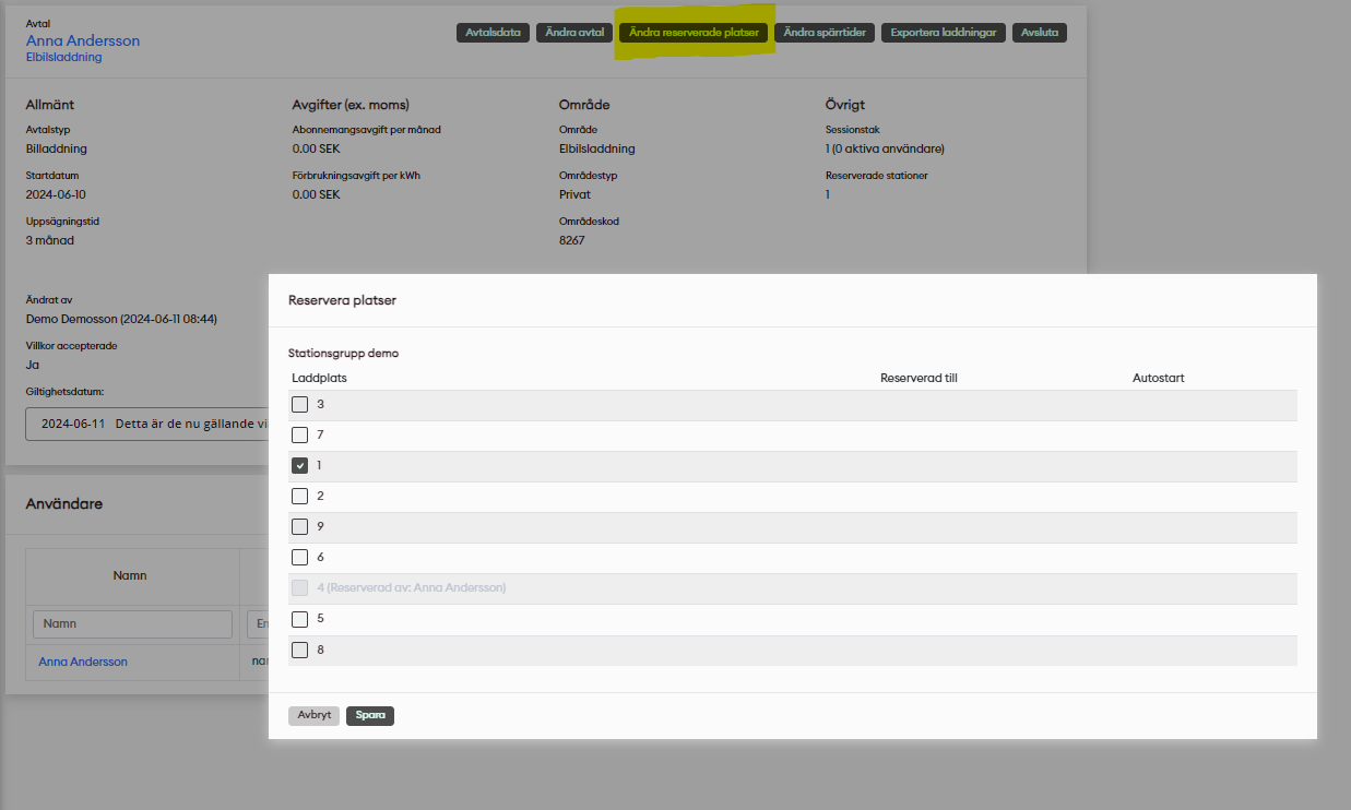 Click on the gear wheel symbol next to the name of the active contract that should be assigned a reserved parking spot